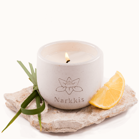 נר ריחני משעוות סויה טבעית, בניחוחות לימוניים בלווית פצ׳ולי ויסמין. הנר וכלי הבטון הרב-שימושי המאכלס אותו מיוצרים בעבודת יד בישראל. נר ריחני זה בוער עד כ- 40 שעות ומתאים במיוחד לחדרים קטנים ובינוניים.