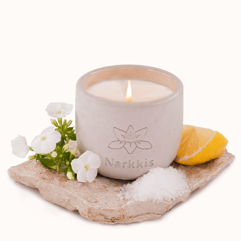 נר ריחני משעוות סויה טבעית, בניחוחות של יסמין, לילך ומלח ים. הנר וכלי הבטון הרב-שימושי המאכלס אותו מיוצרים בעבודת יד בישראל. נר ריחני זה בוער עד כ- 40 שעות ומתאים במיוחד לחדרים קטנים ובינוניים.