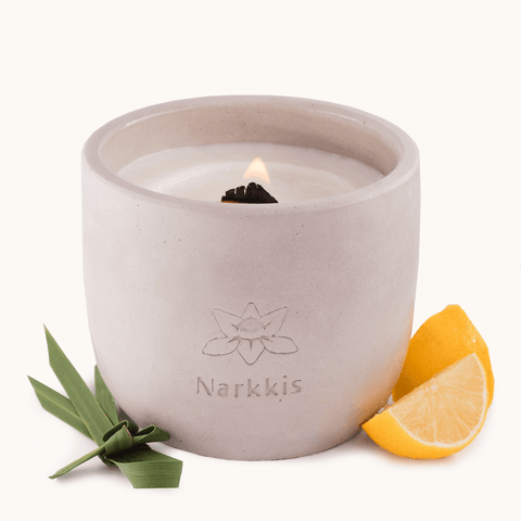 נר ריחני משעוות סויה טבעית, בניחוחות לימוניים בלווית פצ׳ולי ויסמין. לנר זה פתיל עץ מתפצפץ, המשמיע רחשי בערה נעימים בזמן הדלקתו. הנר וכלי הבטון הרב-שימושי המאכלס אותו מיוצרים בעבודת יד בישראל. נר ריחני זה בוער עד כ- 150 שעות ומתאים במיוחד לחדרים בינוניים וגדולים.