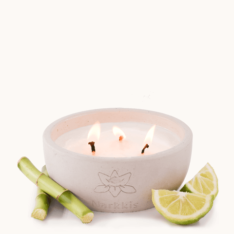 נר ריחני משעוות סויה טבעית, בניחוחות של במבוק טרי, ליים ועלים ירוקים. לנר זה 3 פתילי כותנה, להעצמת הפצת הריח. הנר וכלי הבטון הרב-שימושי המאכלס אותו מיוצרים בעבודת יד בישראל. נר ריחני זה בוער עד כ- 60 שעות ומתאים במיוחד לחדרים בינוניים וגדולים.