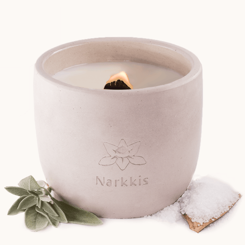 נר ריחני משעוות סויה טבעית, בניחוחות של מלח ים, אוזון, הדרים ועלים ירוקים. לנר זה פתיל עץ מתפצפץ, המשמיע רחשי בערה נעימים בזמן הדלקתו. הנר וכלי הבטון הרב-שימושי המאכלס אותו מיוצרים בעבודת יד בישראל. נר ריחני זה בוער עד כ- 150 שעות ומתאים במיוחד לחדרים בינוניים וגדולים.